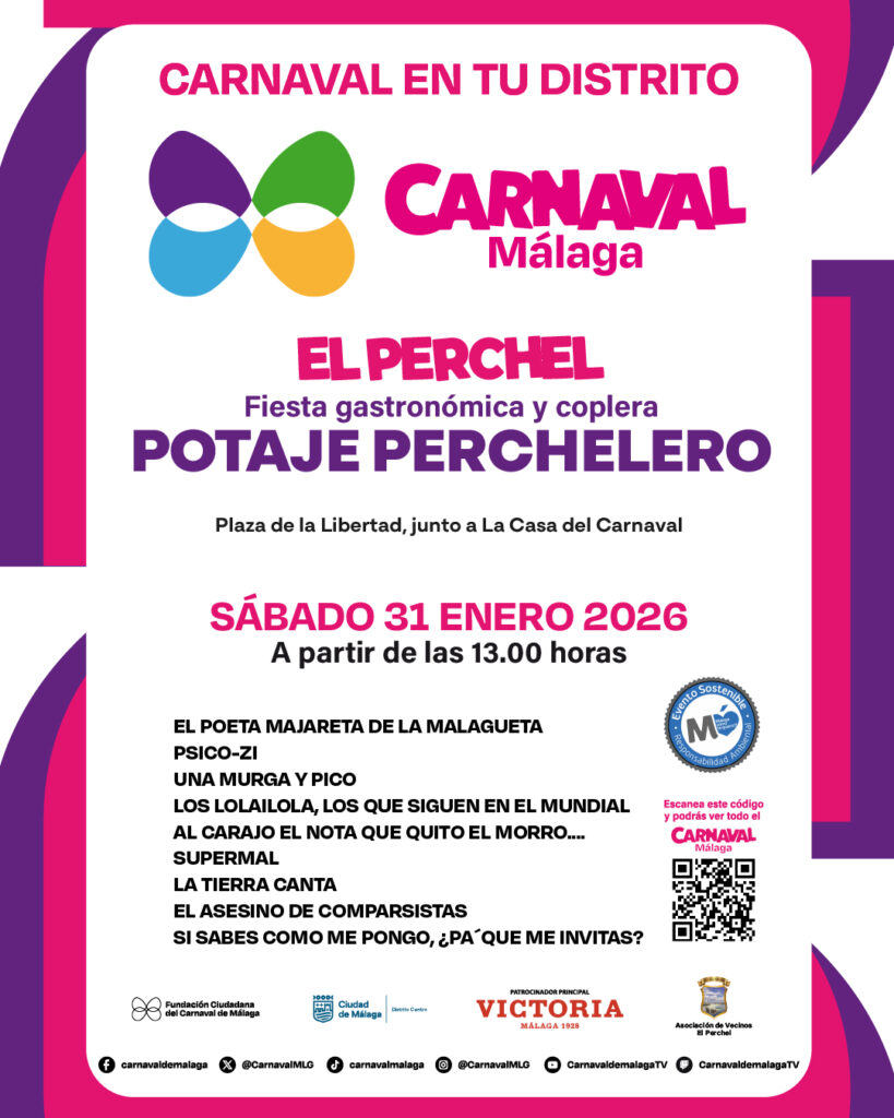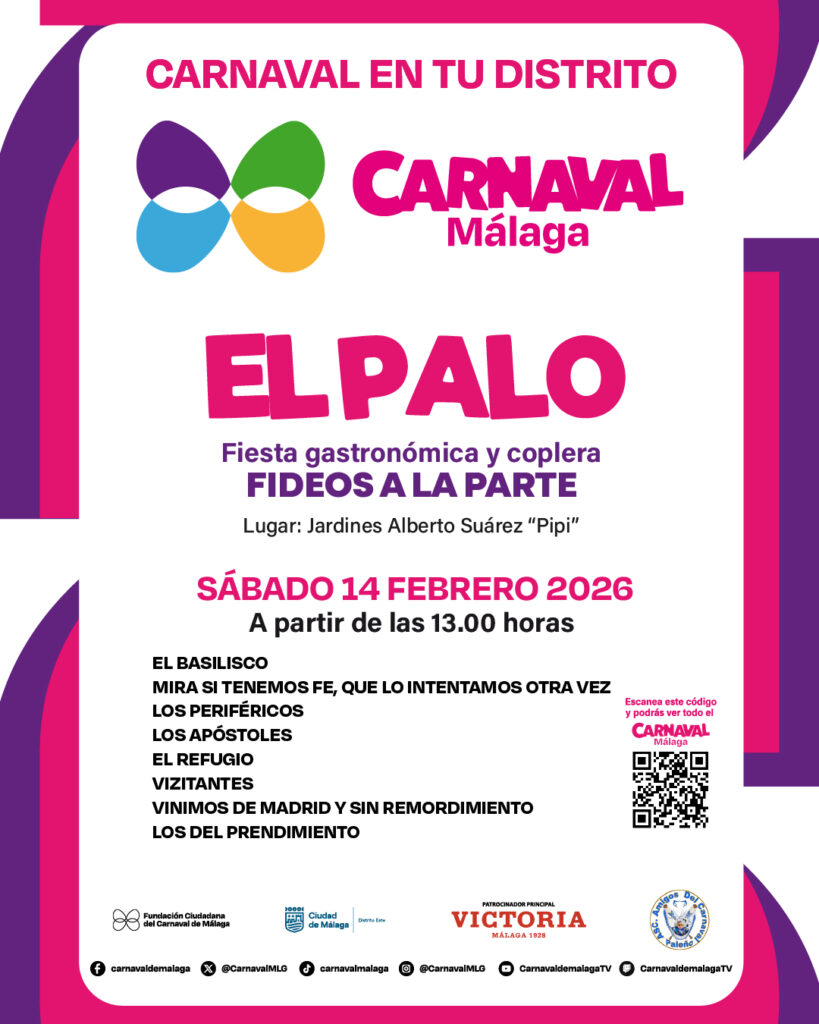Del 31 de enero al 14 de febrero se llevará a cabo la iniciativa ‘Carnaval en tu distrito’, las anteriores previas, y que recorrerán las calles de Málaga. En el Carnaval de calle el despliegue es numeroso después de un incesante trabajo por parte del Patronato. Es una de las iniciativas que se activaron en 2023 y que para esta edición, se mantendrán tres puntos vitales para la fiesta: El Perchel, El Palo y Palma Palmilla. No hay que olvidar que estos actos se producen con el concurso ya iniciado por lo que las agrupaciones presentes ejecutarán el repertorio de esta edición.